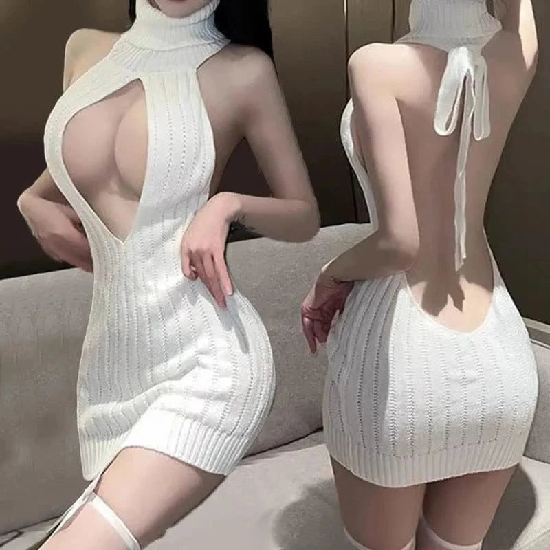 Sexy Hollow Out Pullover Backless Virgin Killer Sweater