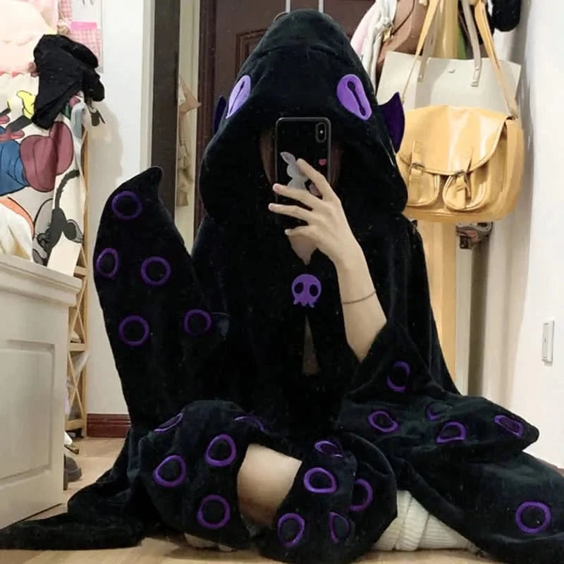 Kawaii Cartoon Octopus Hooded Blanket Pajamas