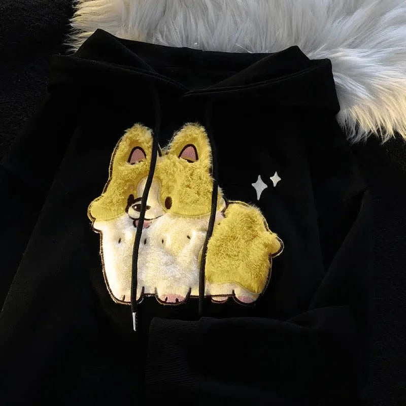 Cartoon Puppy Flocking Print Sweatshirt Hoodie