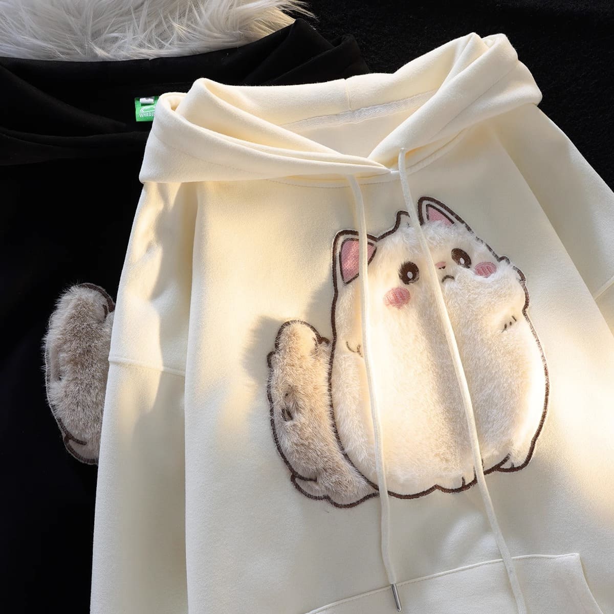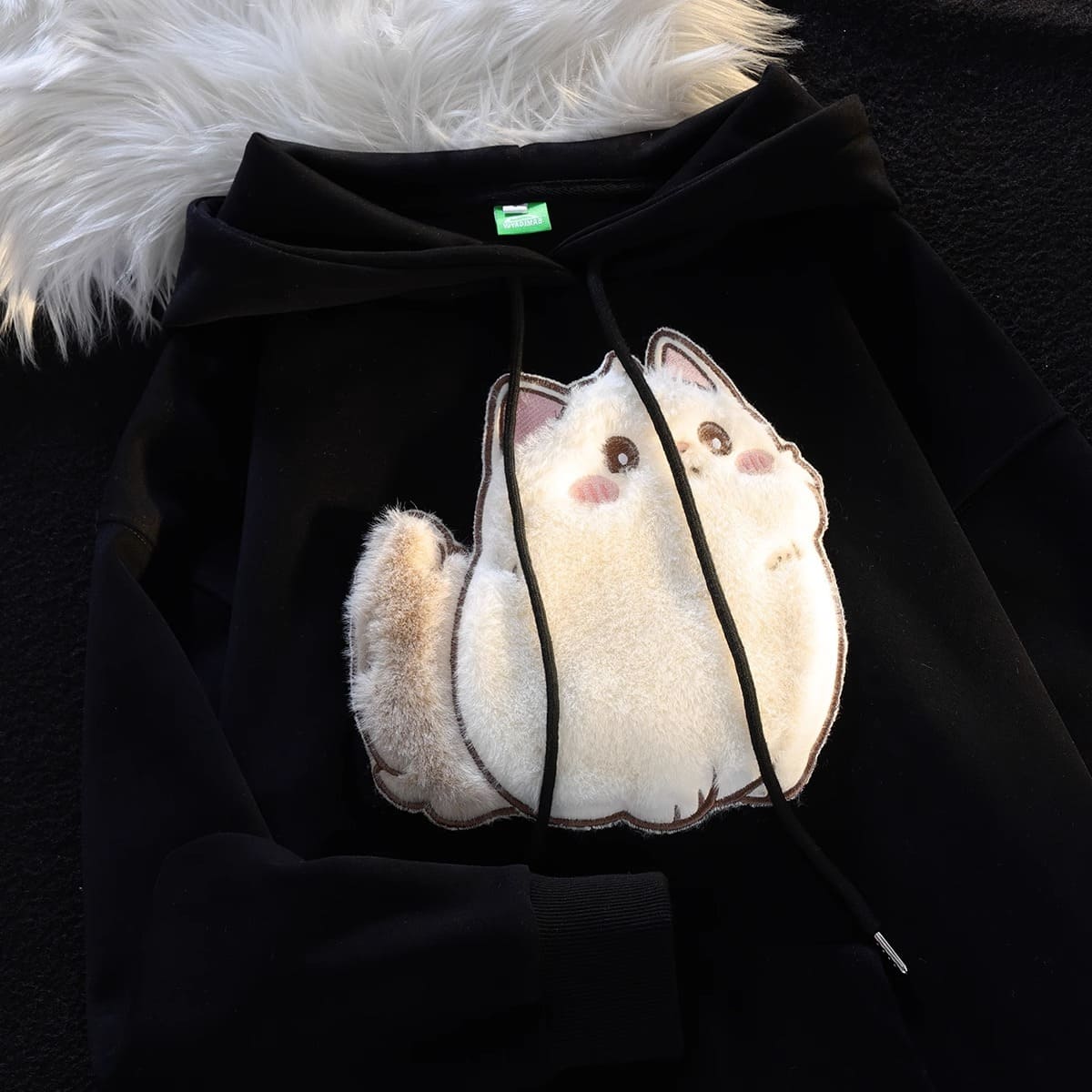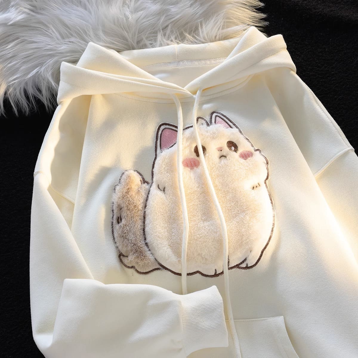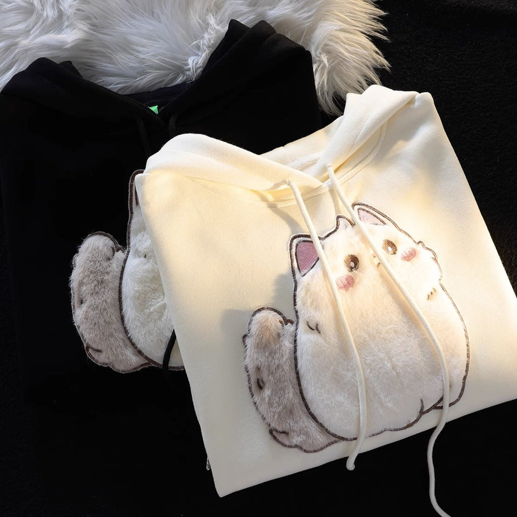 Cartoon Embroidery Fluffy Kitty Cat Hoodie
