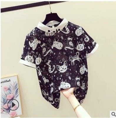 Introducing the Comics Cat Short Sleeve Shirt: a design that stands out with its fun and colorful graphic. Made with lightweight fabric and comfortable fit, it's perfect for a casual day out or a day at the beach. Get ready to show off your style with a unique statement shirt.😻