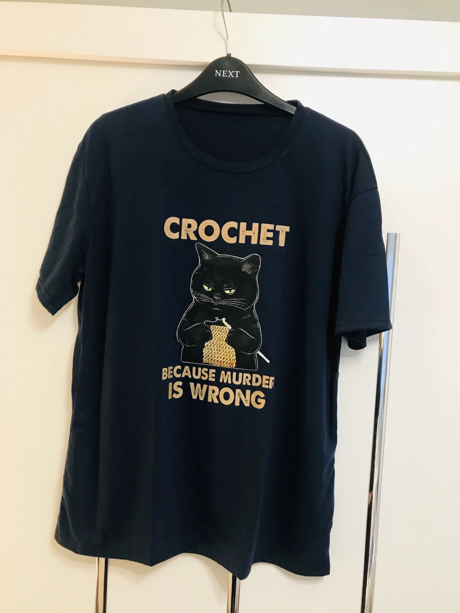 If you love cats and fashion, you'll purr with joy over this Funny Crochet Cat T-Shirt! Featuring a mischievous grin and long, snuggly tail, it's a meow-sterpiece of a top that will make everyone smile. Rock your feline style in a way that's fur-real!😻