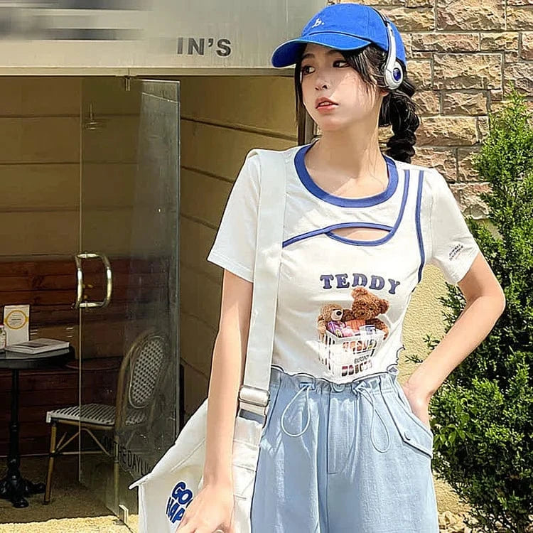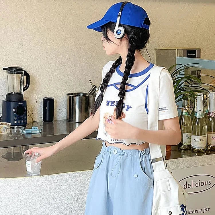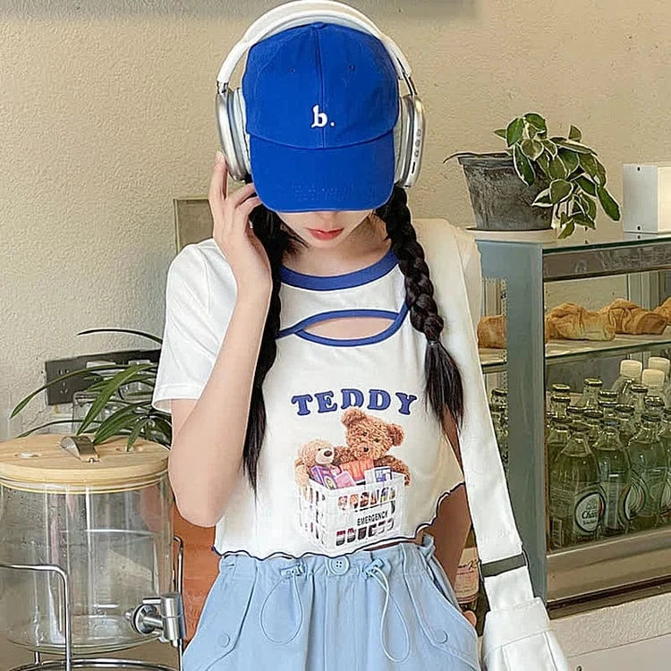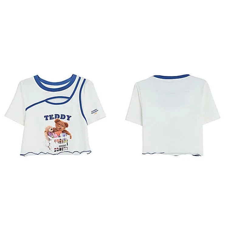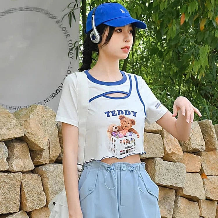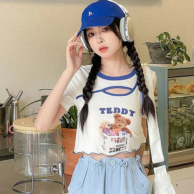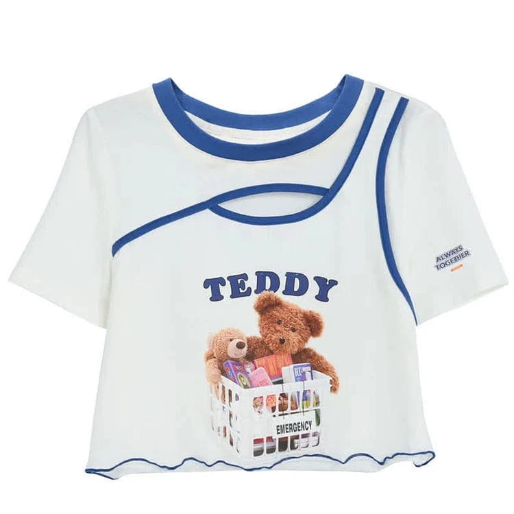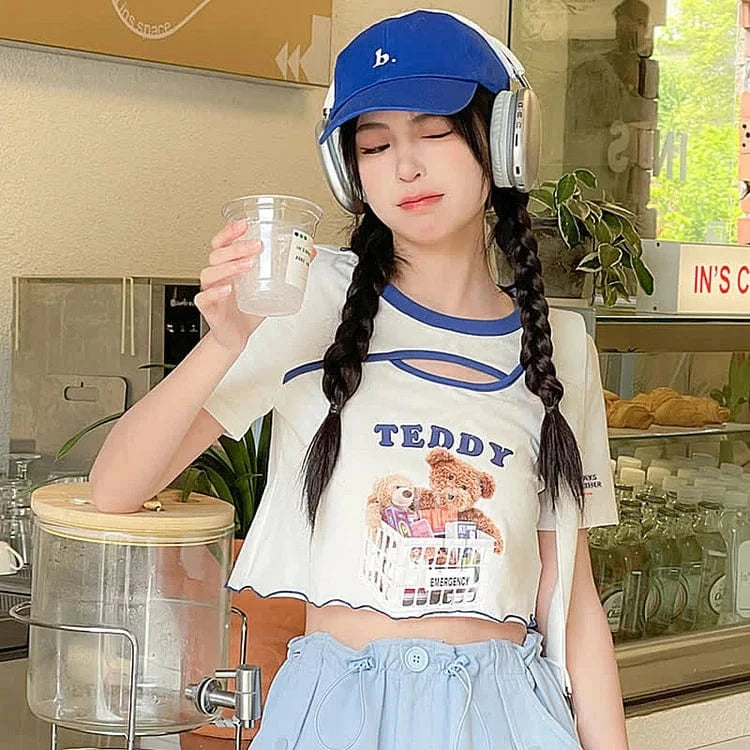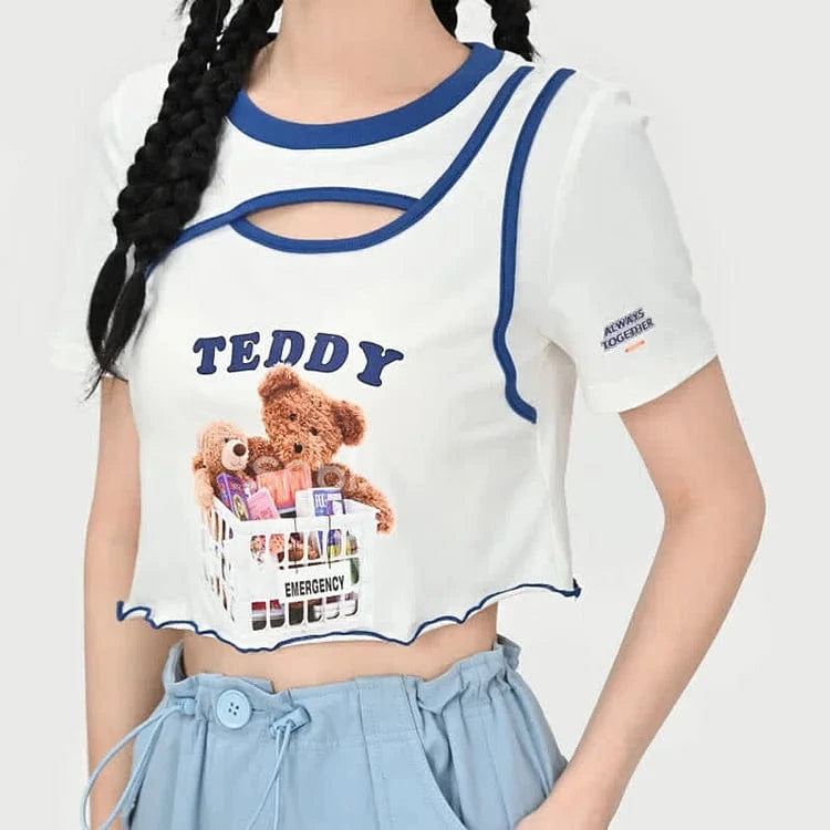 Cartoon Teddy Bear Print Matching Best Friends Crop T-Shirt