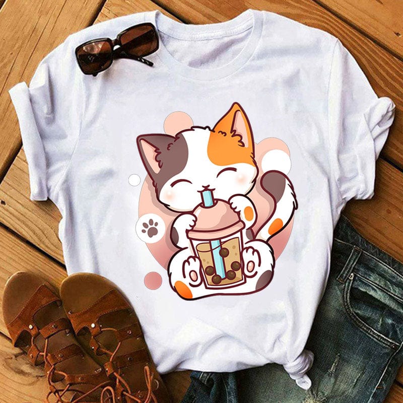 • Package Included: Kawaii Cartoon Milk Tea Cat T-Shirt