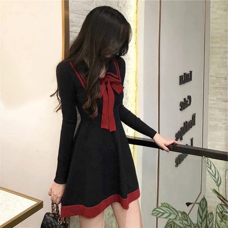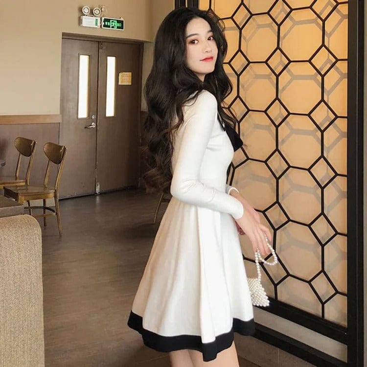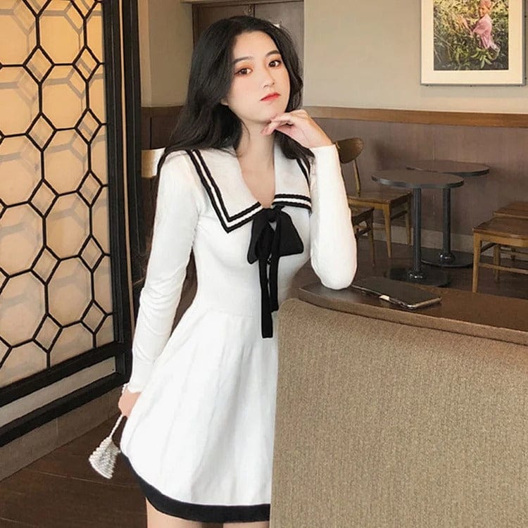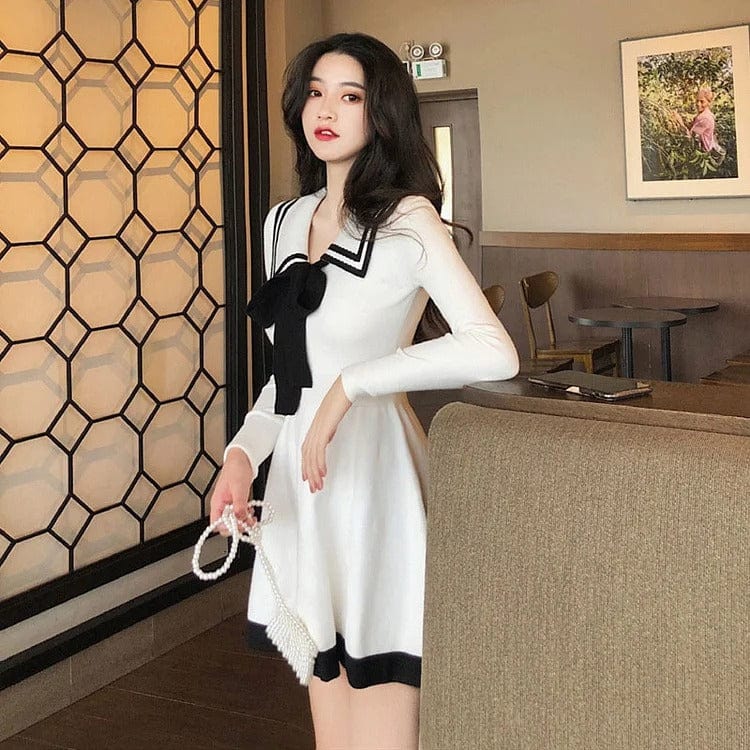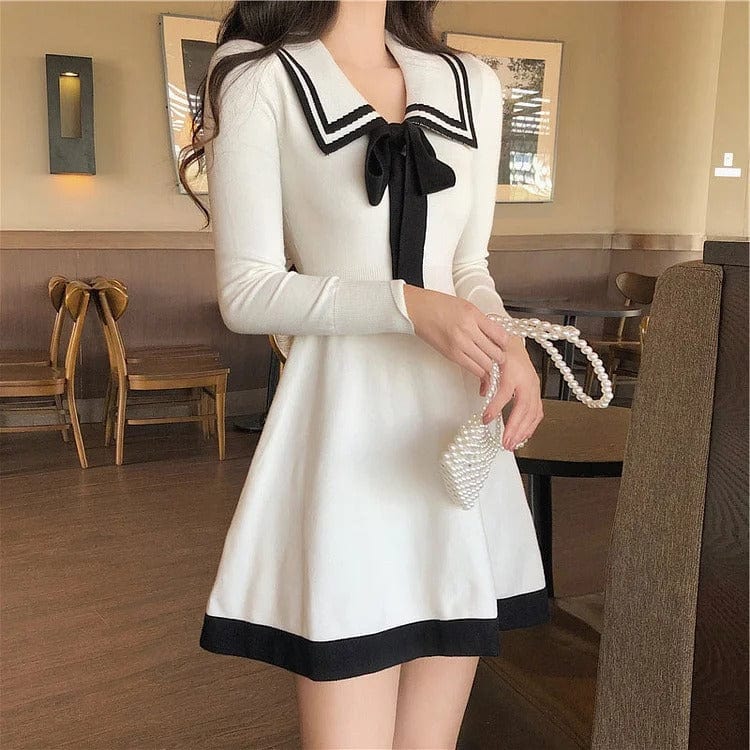 Preppy Bowknot Lapel High Waist Mini Dress